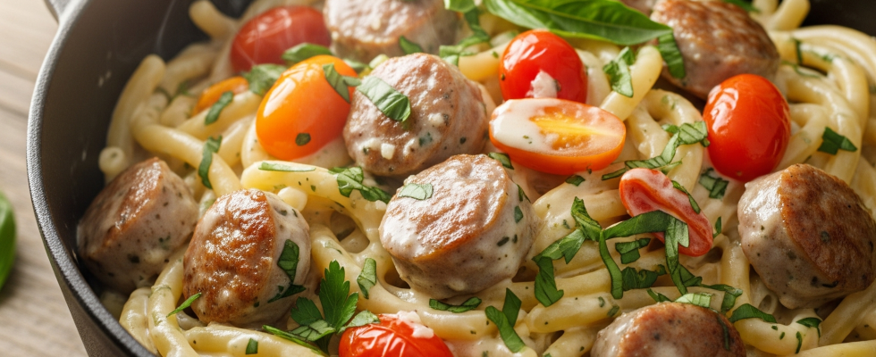 A comforting one-pot pasta with Italian sausage, vegetables, and a creamy sauce — minimal dishes and big flavor.