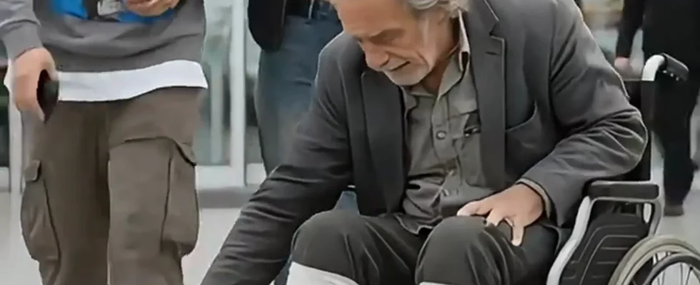 The video opens with a shocking scene outside a grocery store where a young man and woman approach an elderly man in a wheelchair with casts on both legs. After mocking him, the young man grabs the man’s cup of noodles and, with a cruel laugh, dumps it directly onto his head. The couple continues to laugh hysterically as they push him out of his wheelchair, leaving him in a state of shock and humiliation on the ground, covered in food.